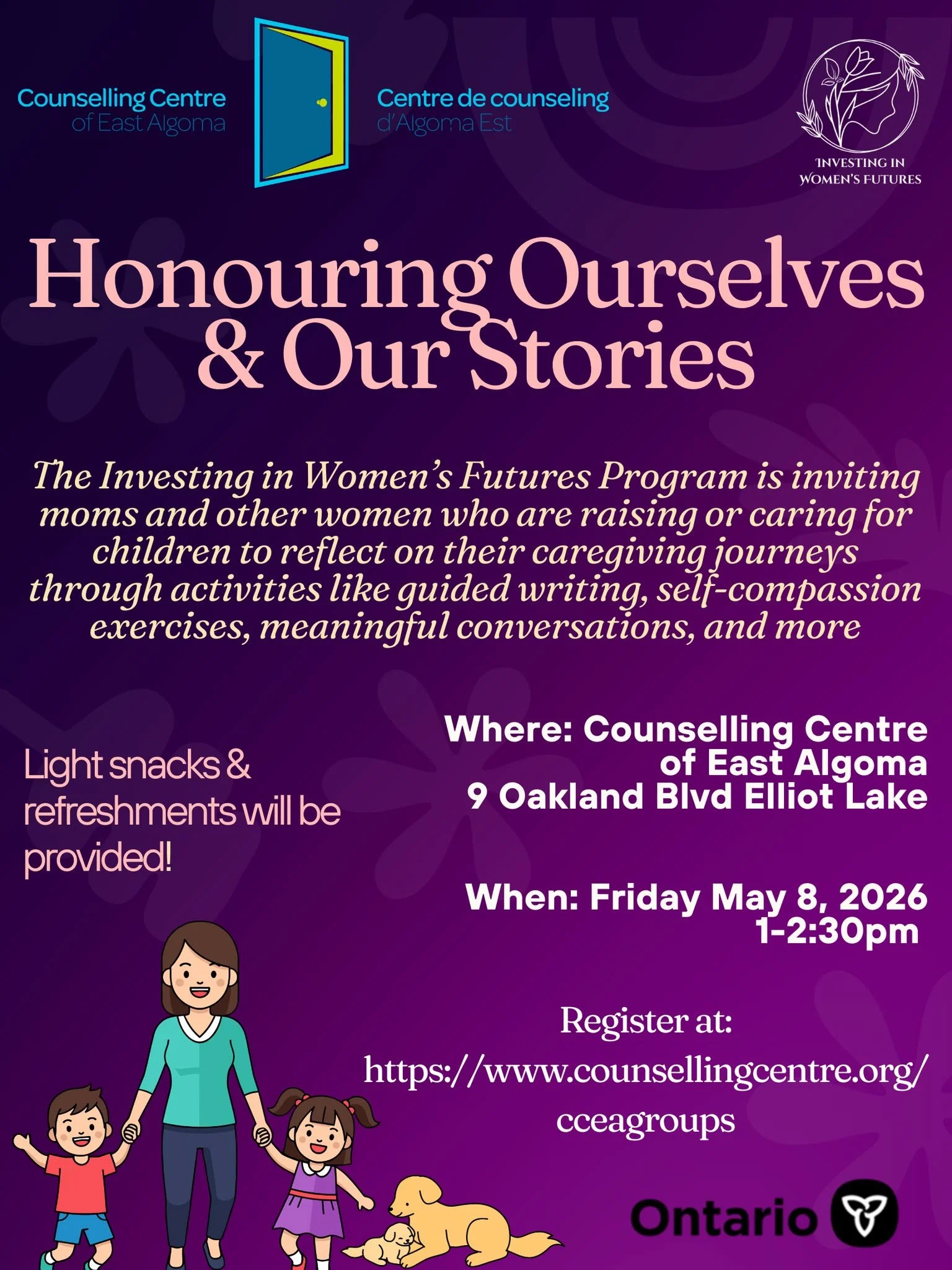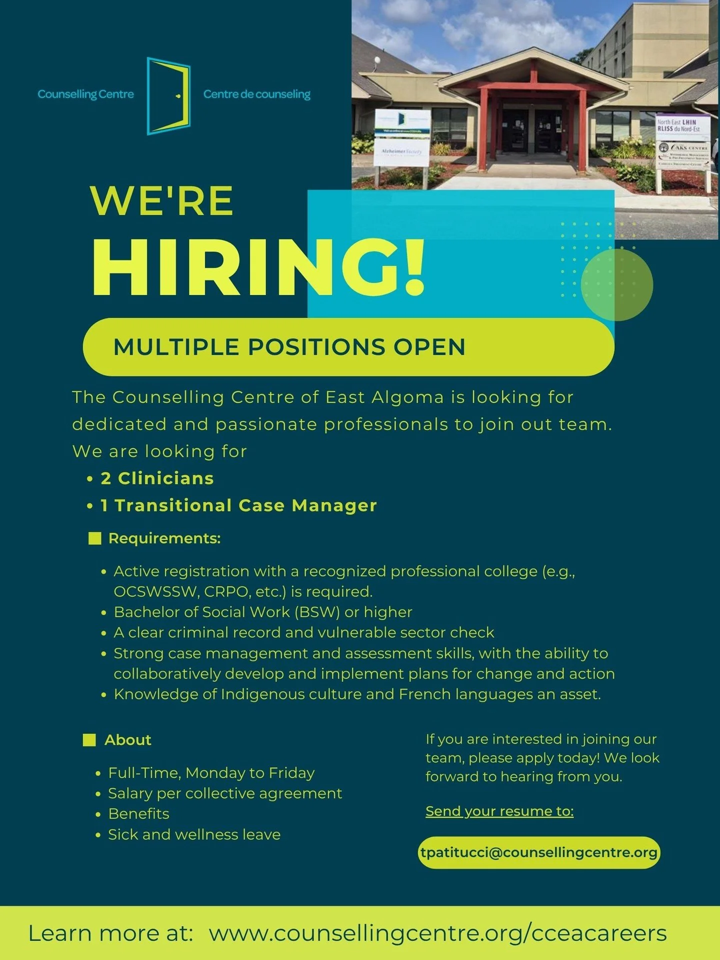 We proudly offer professional counselling services in both English and French, supporting individuals aged 16 and older. Serving communities from Spanish to Iron Bridge, we are here to help you on our journey to well-being.